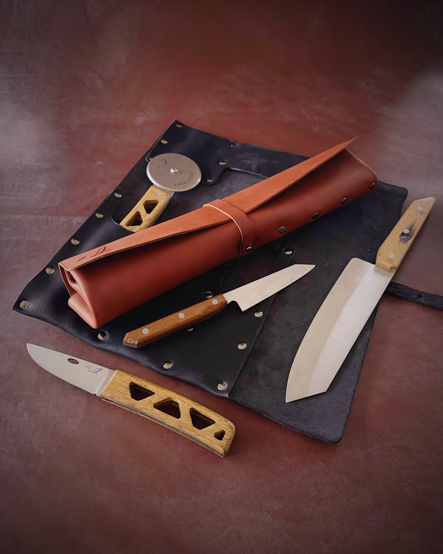 Nos couteaux sont fabriqués 100% en France et assemblés avec soin dans nos ateliers en Alsace. Nous revalorisons le bois d’anciennes poutres de maisons tricentenaires à colombages. Nous faisons confiance à un partenaire situé à Thiers pour le façonnage des lames garantissant ainsi une qualité professionnelle et une formidable expérience d’utilisation.